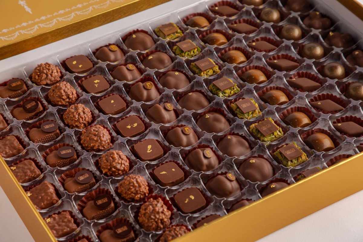 1-علبه كاكاو متنوعه بلون كلاسيك ذهبي مع الابيض -حجم كبير