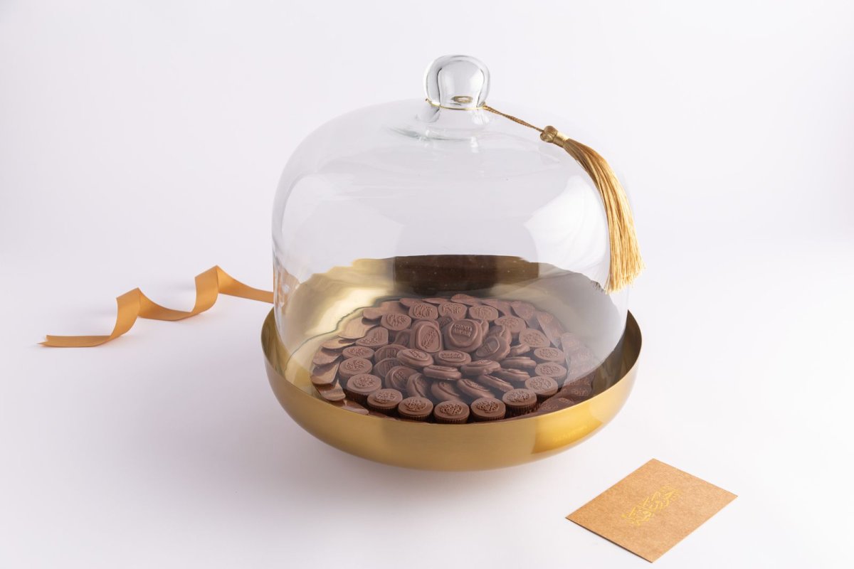 4-كاكاو متنوع-صينيه ذهبيه مع غطا زجاج-حجم متوسط