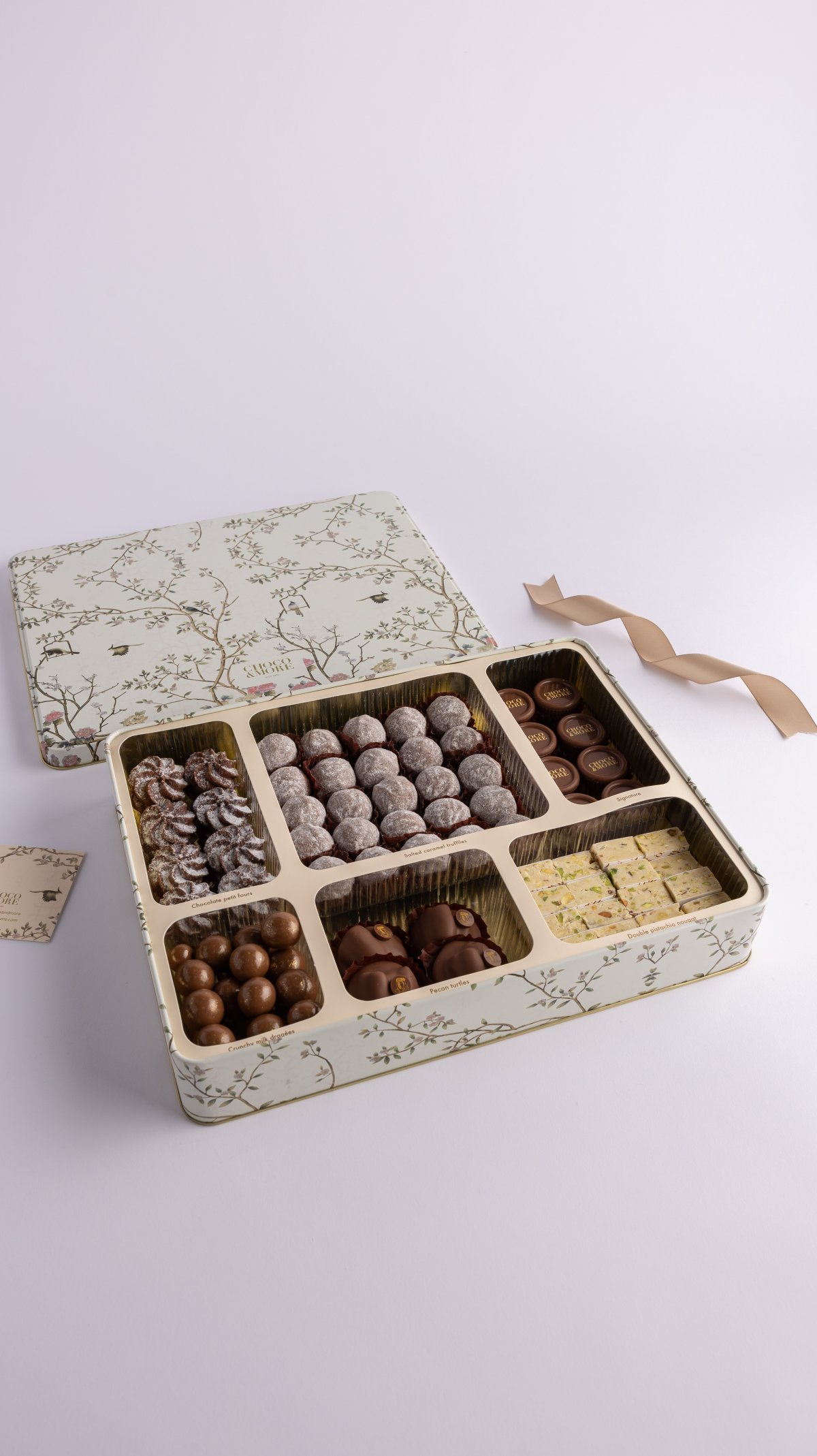 علبه كاكاو معدنيه متنوعه بنقشه الطير الاوف وايت-1