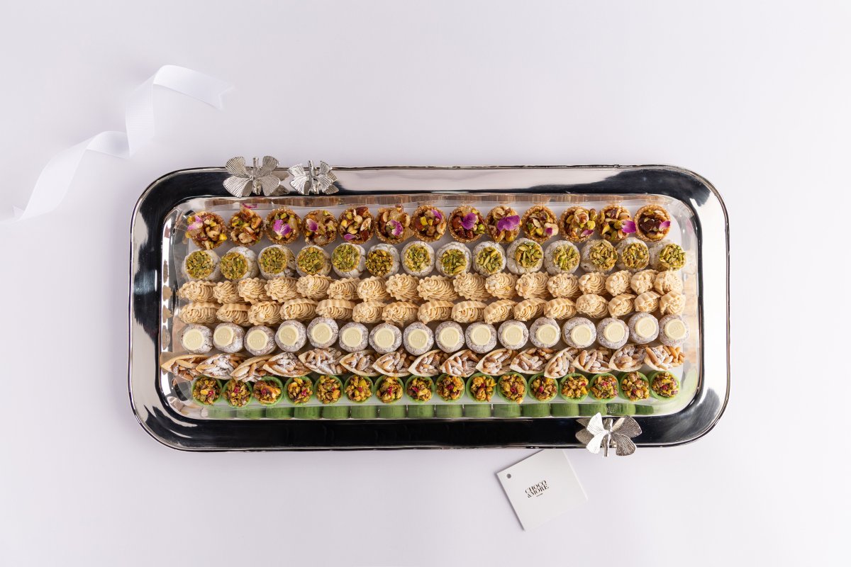 مني حلويات عربيه متنوعه-صينيه فراشات مستطيله
