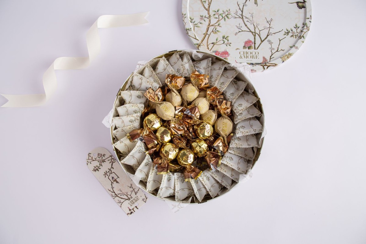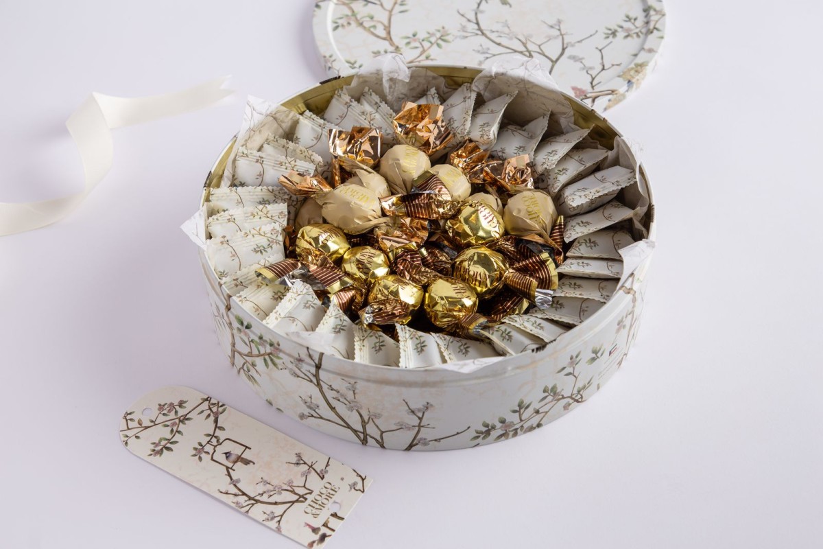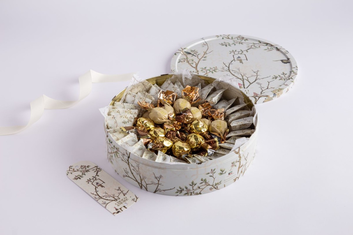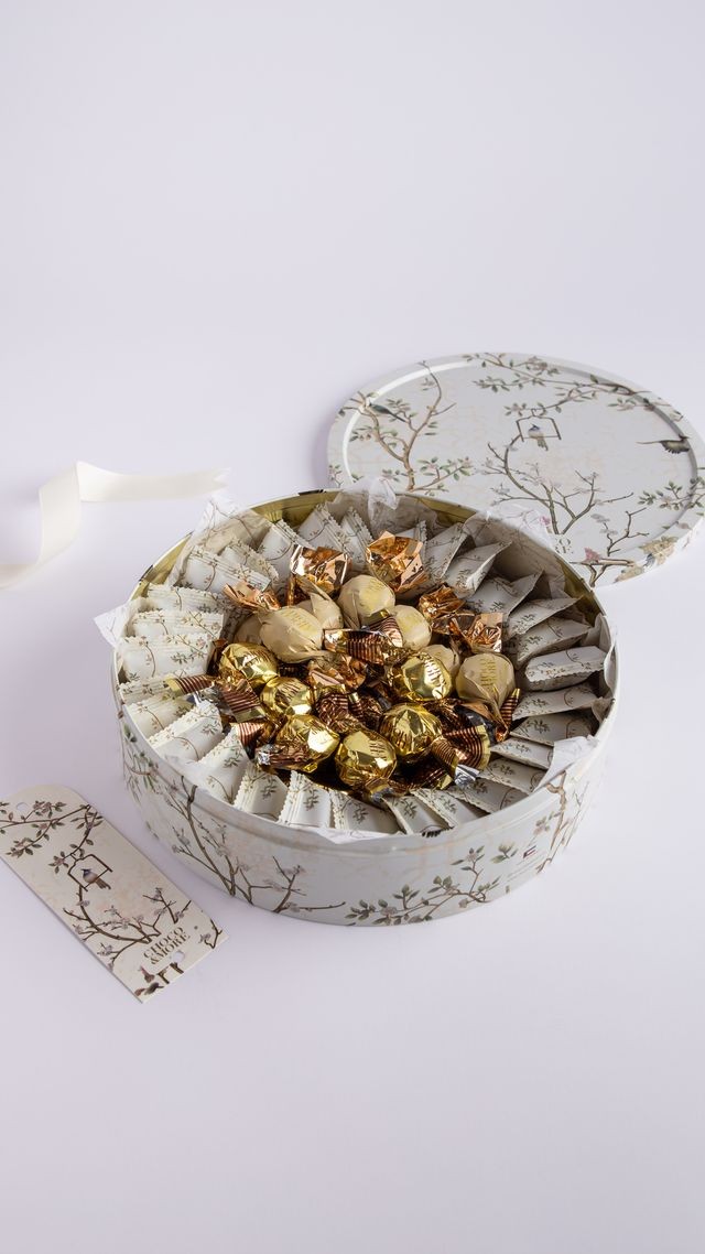 2 - كاكاو مغلف متنوع-علبه معدنيه بنقشه الطير الاوف وايت