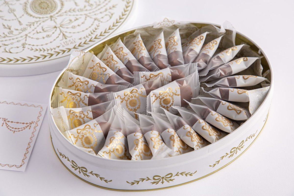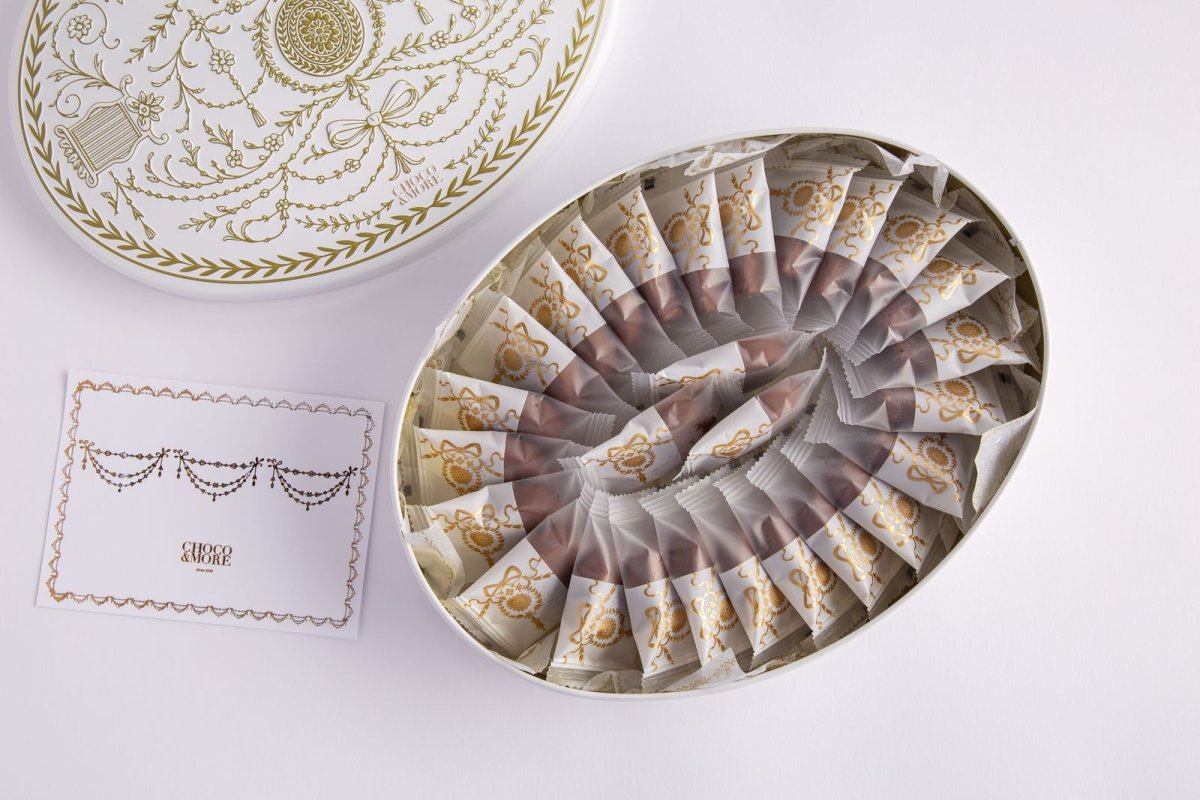 1-كاكاو مغلف متنوع -علبه معدنيه كلاسيك ابيض مع ذهبي