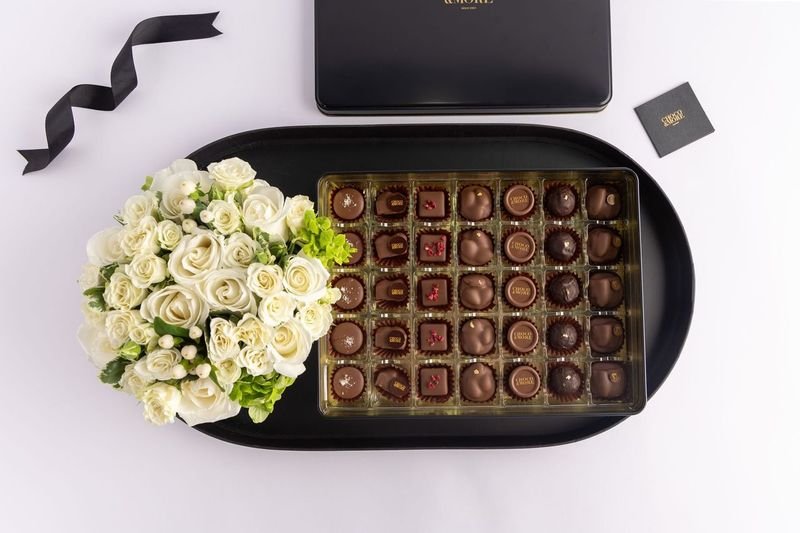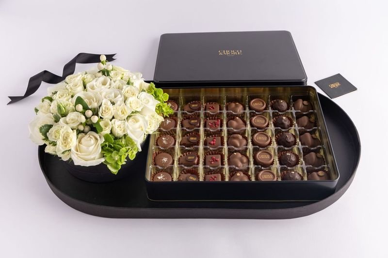 مجموعه هدايا كاكاو مع الورد الطبيعي باللون الأسود - 2