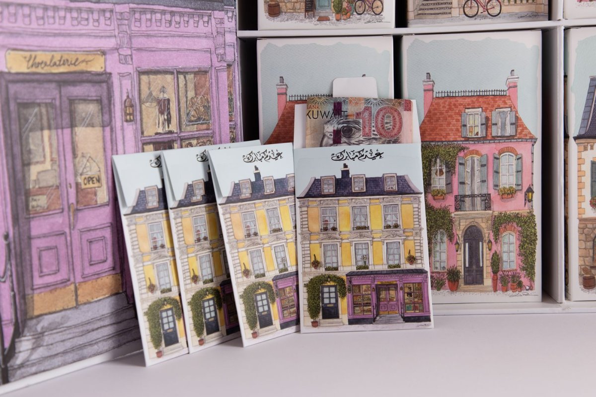 بيت توزيعات عيد مع علب موسيقى وألواح كاكاو‏-مع اظرف العيادي-Q26-31