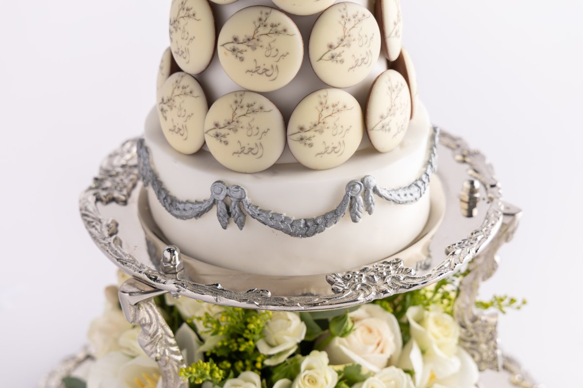 برج مبروك الخطبه -ستاند طبقتين فضي مع الورد الطبيعي