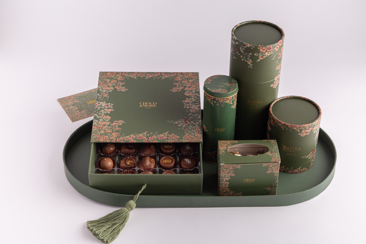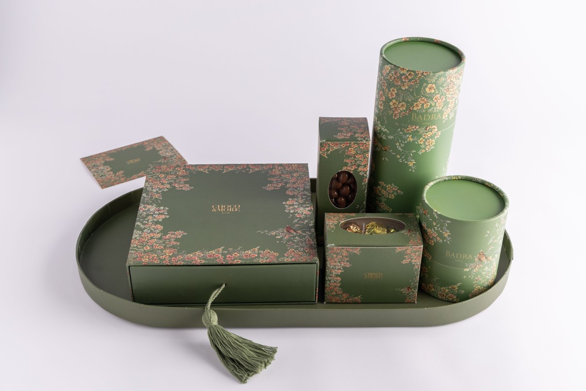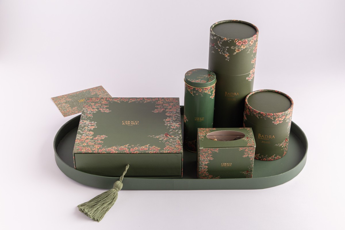 مجموعه هدايا بنقشه كلاسيك صينيه باللون الاخضر-حجم كبير