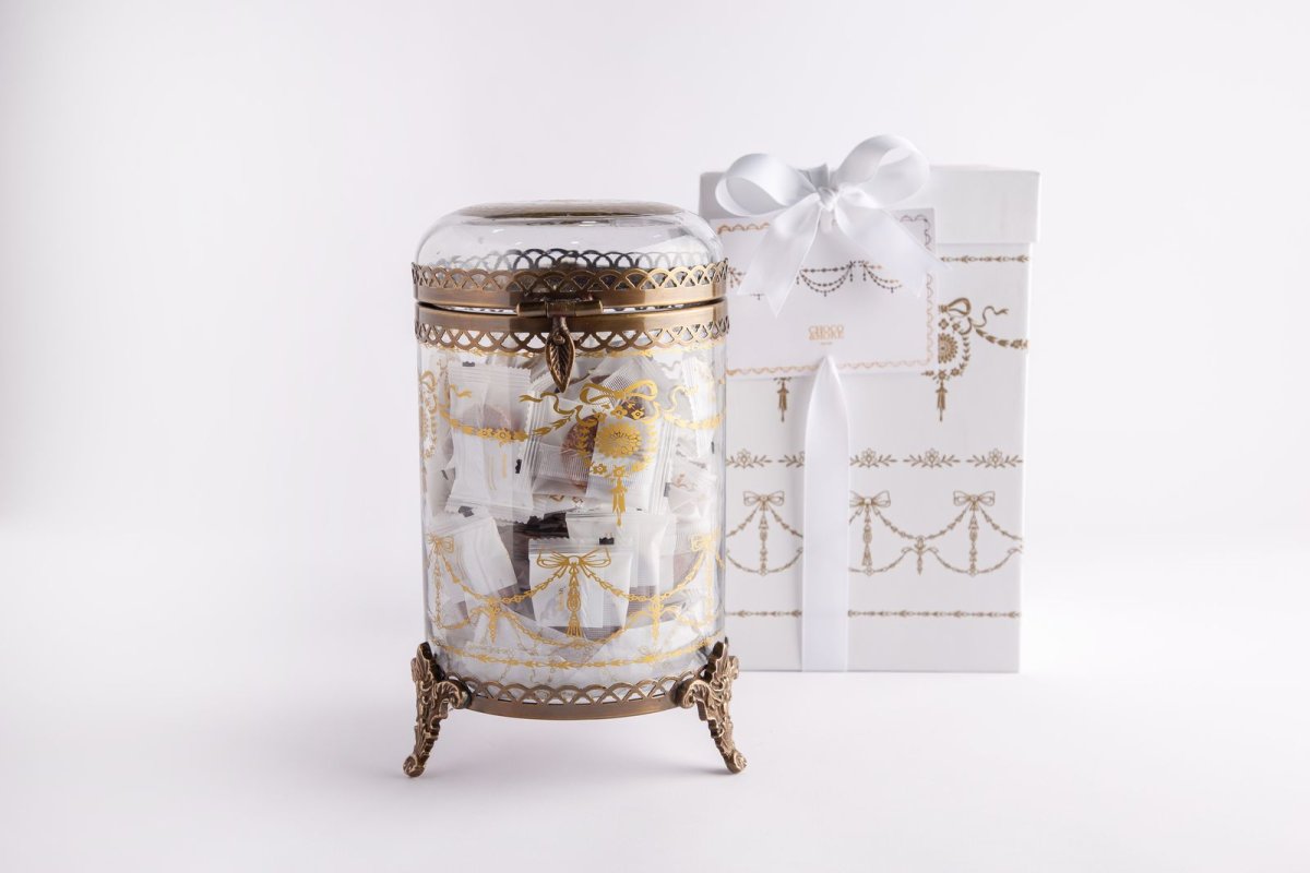 علبه من الزجاج مصنوعه يدويا باللون الكلاسيك الذهبي-حجم كبير