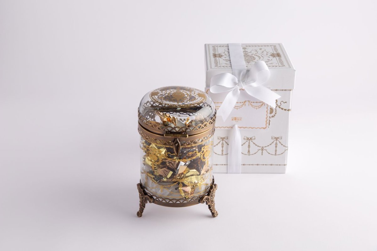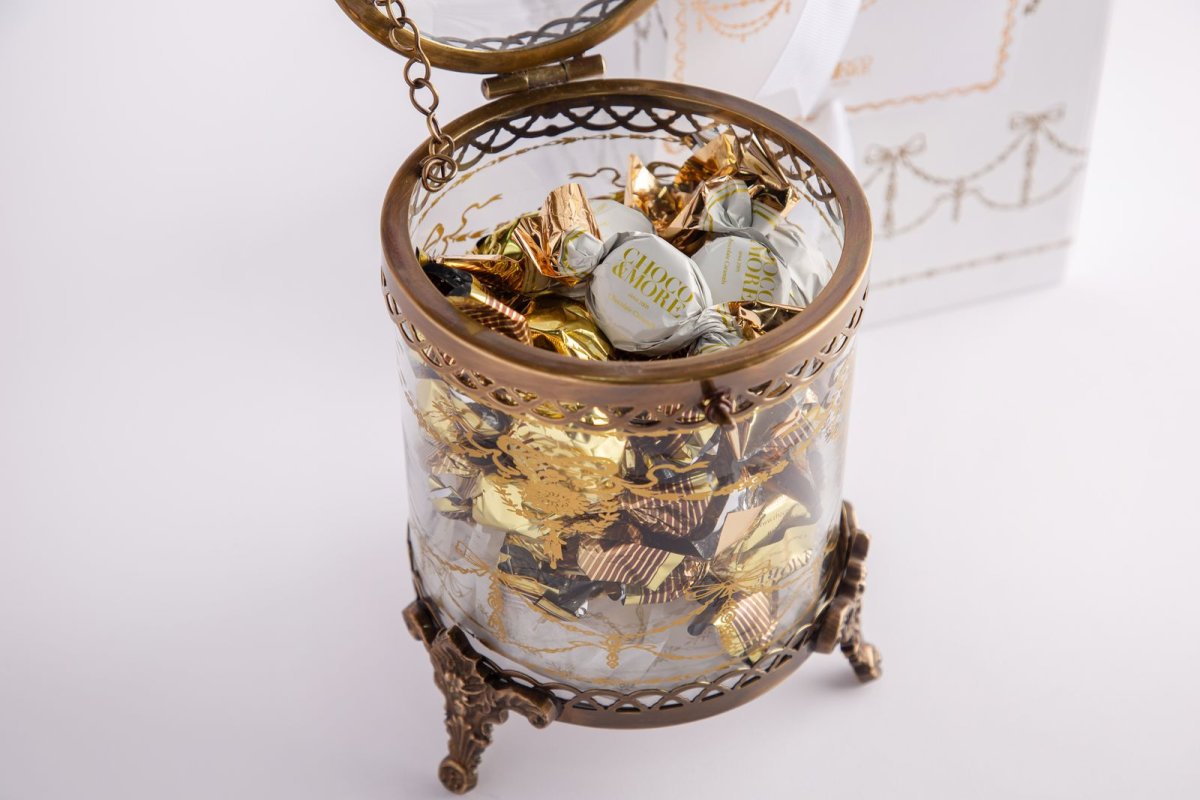 علبه من الزجاج مصنوعه يدويا باللون الكلاسيك الذهبي-حجم صغير