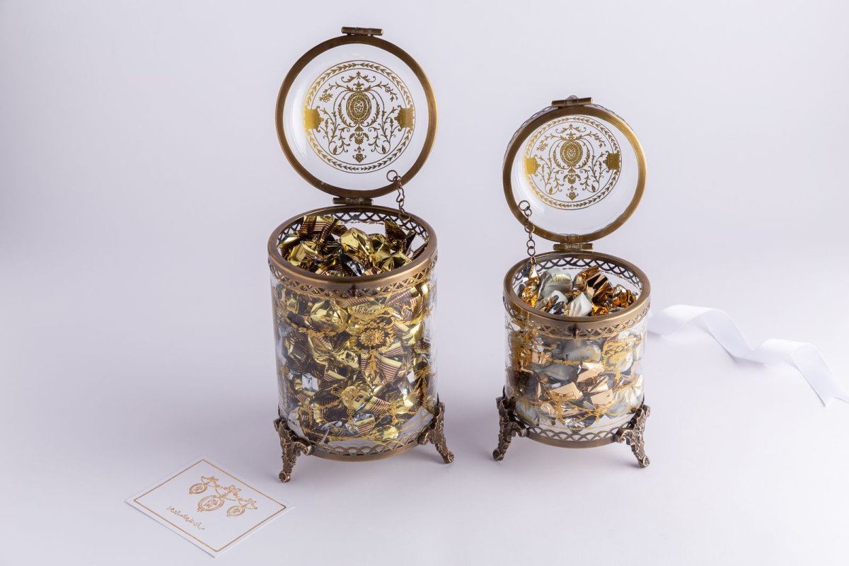صينية كلاسيك ذهبية مستطيلة من الزجاج مصنوعة يدويًا مع غطاء – R26-13