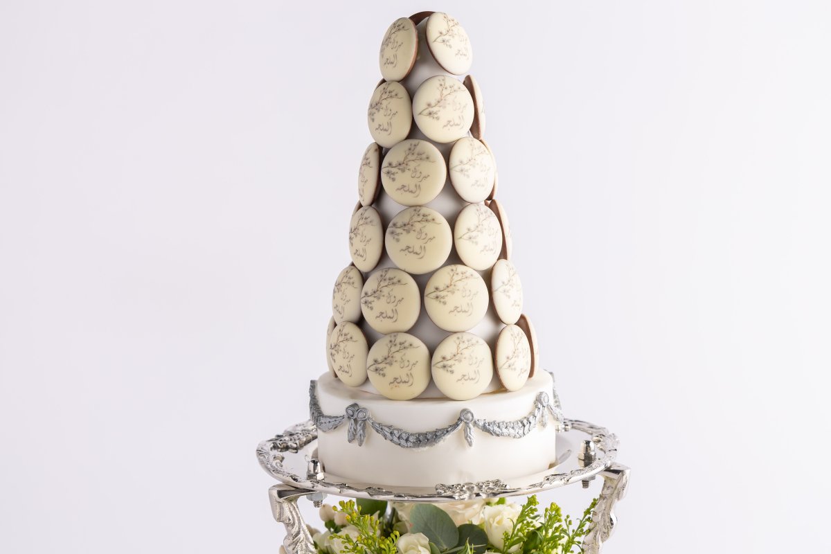 برج مبروك الملجه -ستاند طبقتين فضي مع الورد الطبيعي