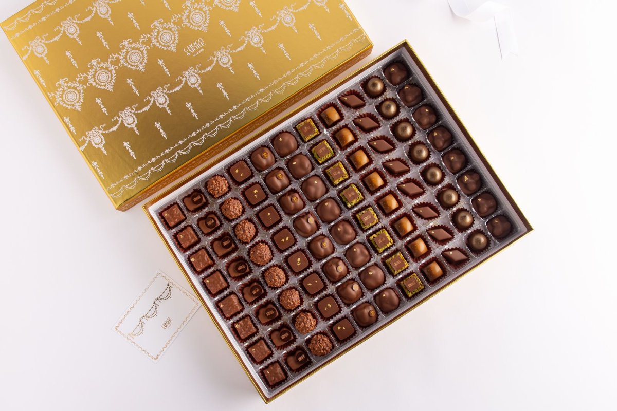 1-علبه كاكاو متنوعه بلون كلاسيك ذهبي مع الابيض -حجم كبير