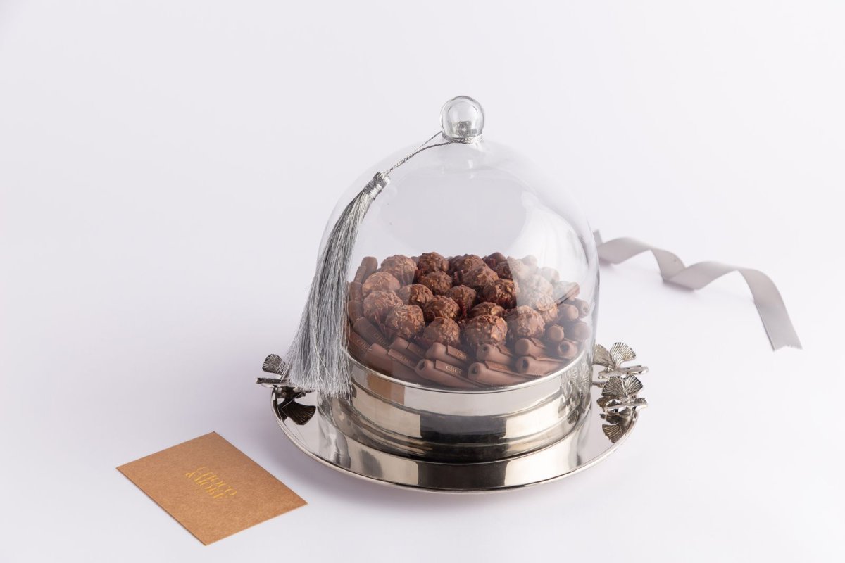 1-طقم صينيه مع غطا زجاج-كاكاو متنوع