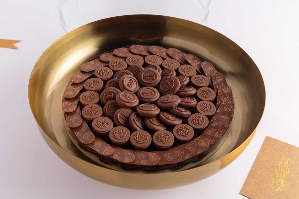 4-كاكاو متنوع-صينيه ذهبيه مع غطا زجاج-حجم متوسط