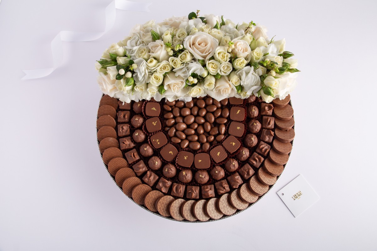 صينيه كاكاو متنوعه مع ورد طبيعي-حجم كبير