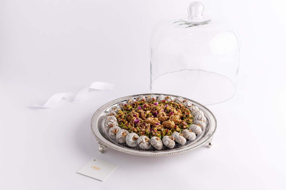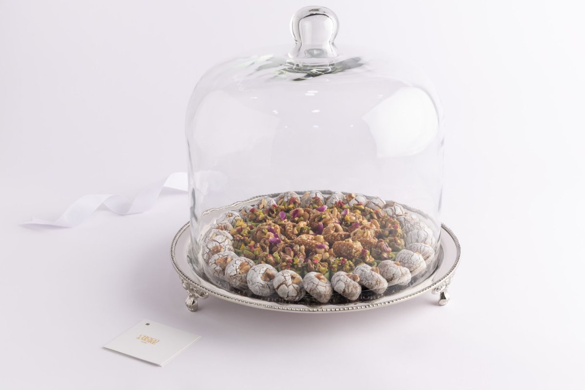 ستاند حلويات عربيه -لون فضي مع غطاء زجاج حجم متوسط - 5