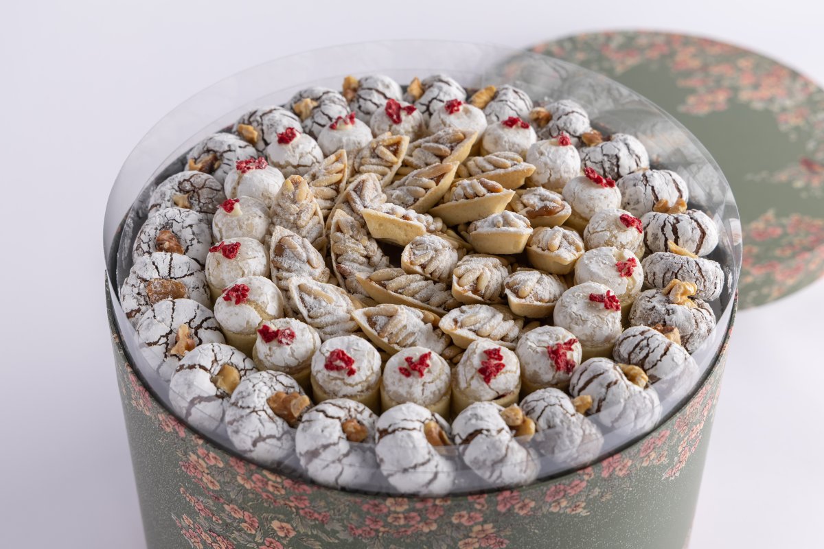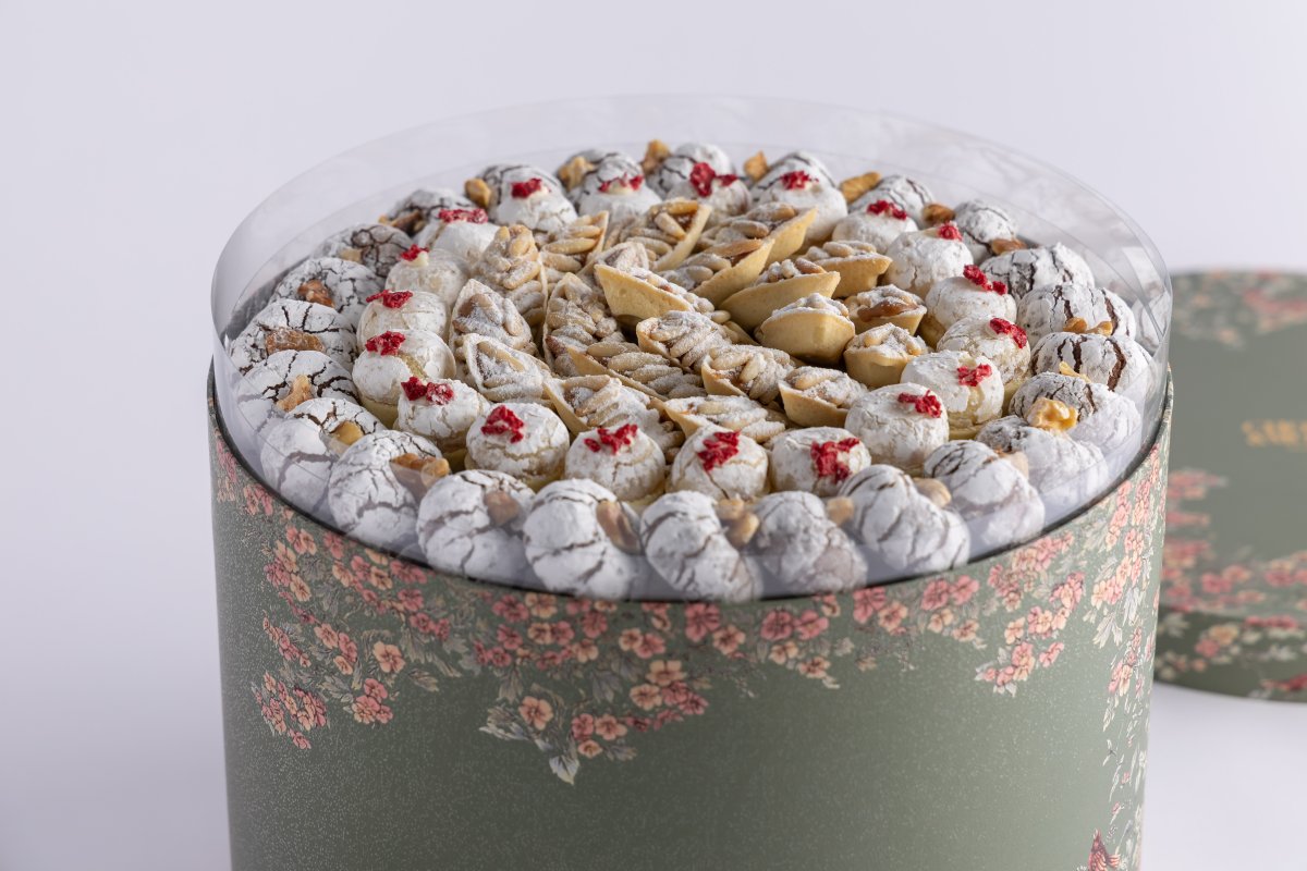 علبه حلويات عربيه متنوعه-نقشه كلاسيك صينيه لون اخضر