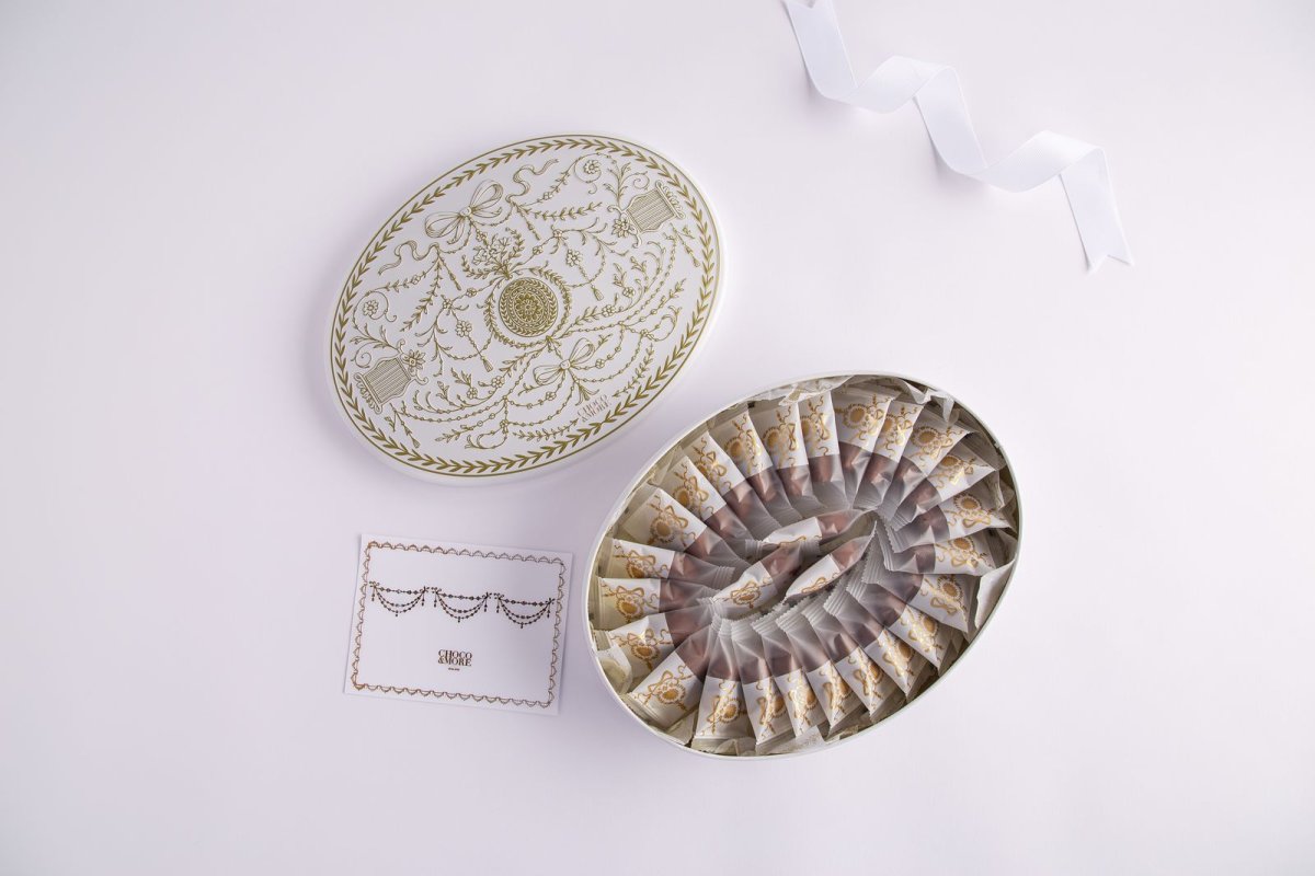 1-كاكاو مغلف متنوع -علبه معدنيه كلاسيك ابيض مع ذهبي