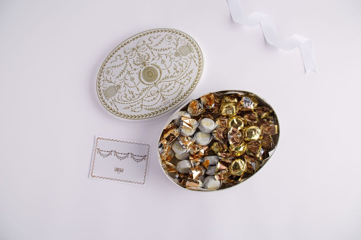 2-كاكاو مغلف متنوع -علبه معدنيه كلاسيك ابيض مع ذهبي