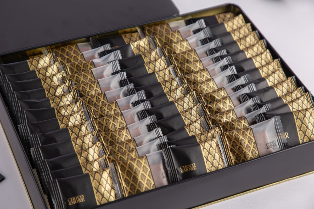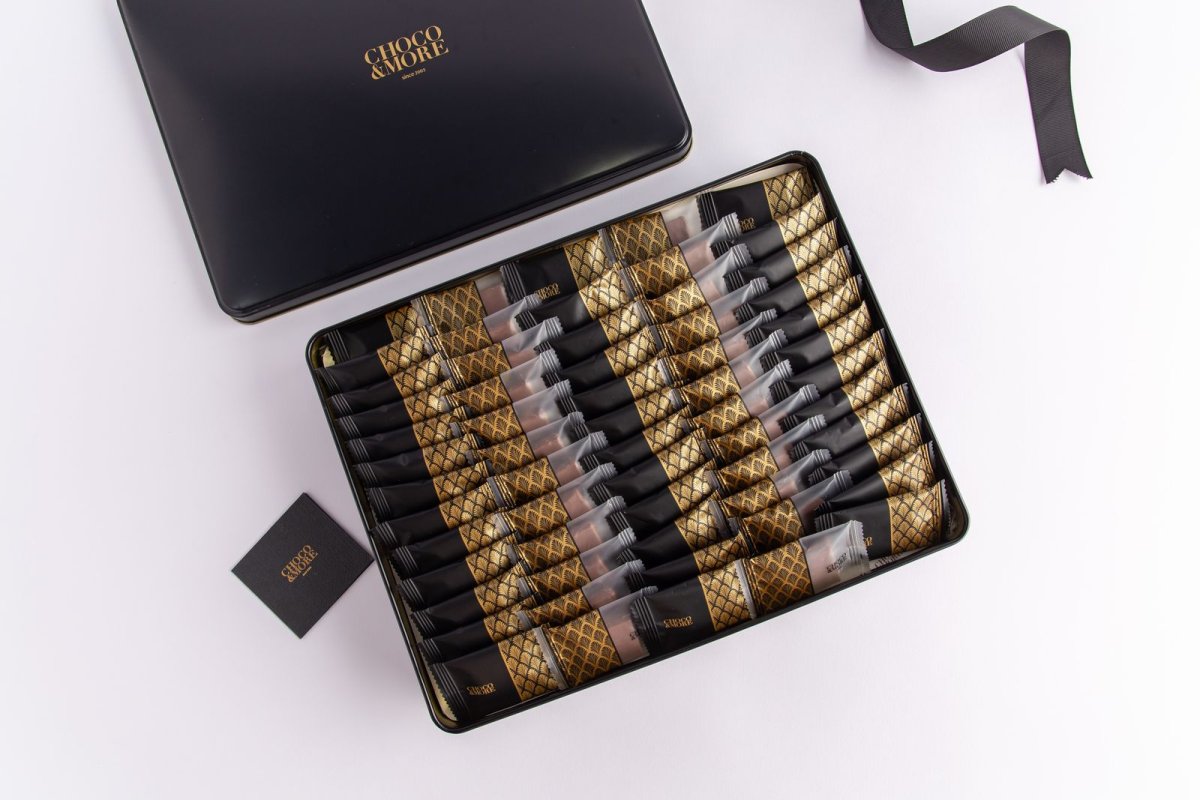 مجموعه كاكاو مغلف متنوعه - علبه معدنيه باللون الاسود