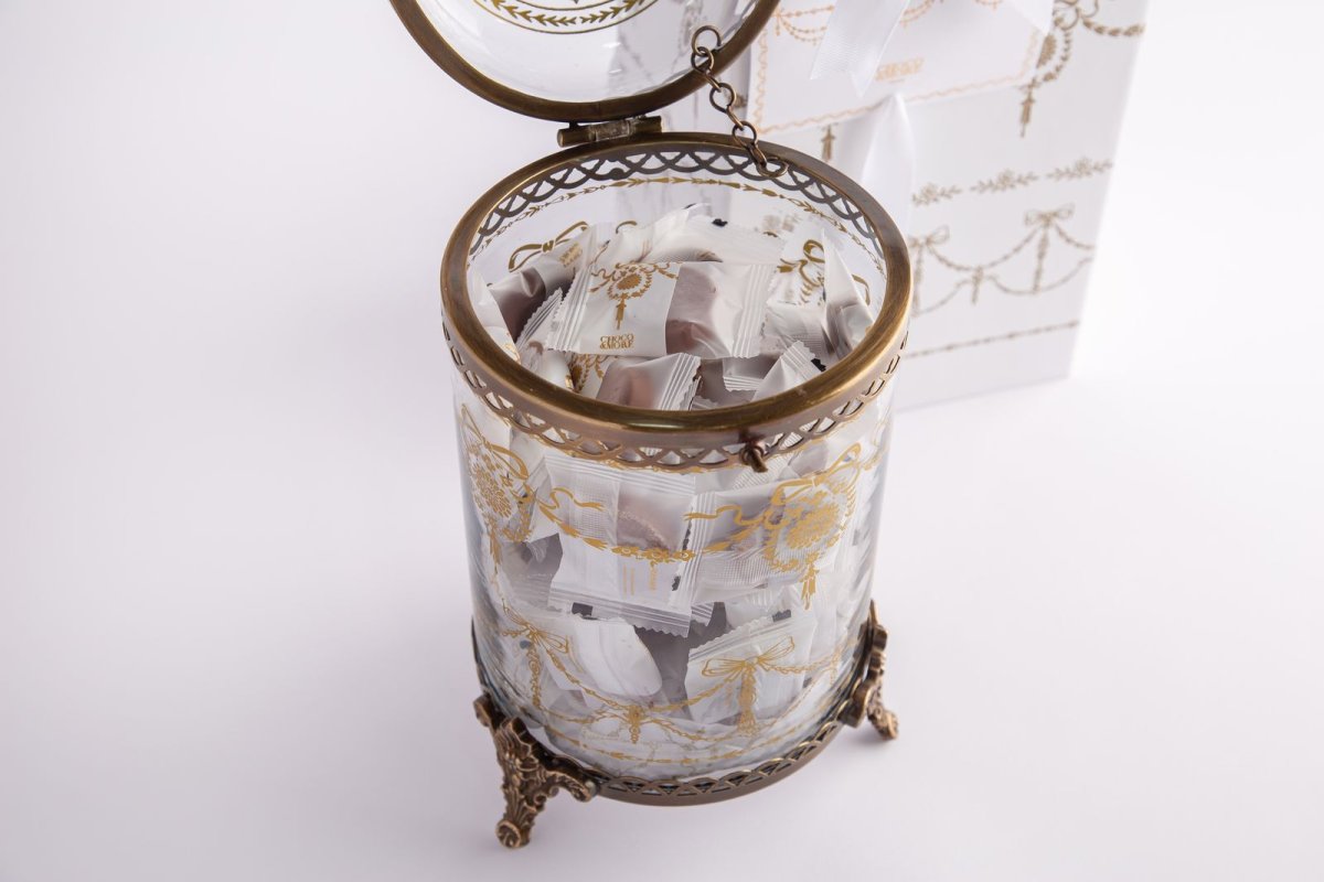 علبه من الزجاج مصنوعه يدويا باللون الكلاسيك الذهبي-حجم كبير